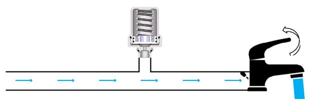 Opening the tap or any valve can provoke a water hammer. A striking example is the destruction of a newly laid line at its first start, when the water supply opens with the valves of the mixers closed.
