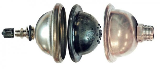 There are several types of device classifications in force. The most practical is the grouping according to the types of membranes used. Today, almost all devices are manufactured with a diaphragm membrane. Non-separable cylinder made of durable steel. Usually consists of two hemispheres, welded together.The membrane is mounted in such a way that the reservoir cavity is divided into two parts. The connecting pipe remains in one part and the spool in the other.