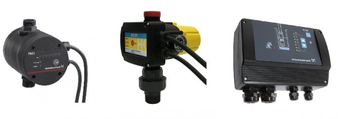 The simplest protection most often used for automatic water supply. The control unit is assembled here from three devices: