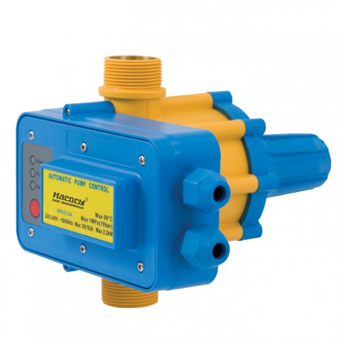 - The pressure switch monitors its level in the system. In case of a strong drop in pressure, the relay starts the motor, in case of an excess, it turns off.