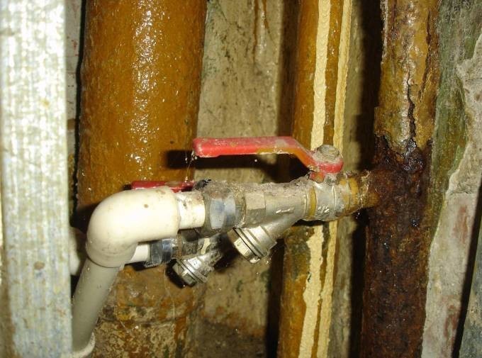 | Corrosion. Rusting of the pipe is accelerated by a damaged outer layer of paint, frequent disconnections of the water supply (in this case, the unpainted inner surface of the pipe is in contact with high-humidity air), and poor ventilation in the bathroom (read - consistently high humidity). The first holes appear on longitudinal welded seams (VGP pipes GOST 3262 are electrically welded), on threads where the pipe wall thickness is minimal, and in ceilings where the pipe surface is not ventilated and (in the case of cold water risers) is continuously wetted by condensate falling on them. | |