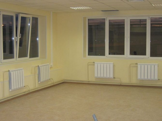 Such systems are usually assembled only in one-story buildings small area. In this case, one line is included in the design, which is simultaneously both supply and return. It can be laid under the floor or directly along the wall. Radiators in such systems are installed on a bypass with a shut-off valve. Such a scheme in the future facilitates their repair or replacement, and also allows you to regulate the air temperature in different rooms. The pipes themselves are installed with a slope of at least 0.005 m per linear meter towards the water flow.