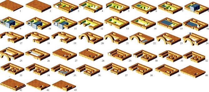 The technology of using the ordering provides, upon completion of the laying of the first furnace row, the installation of the door and the blower, after which they begin to lay the 2nd row;