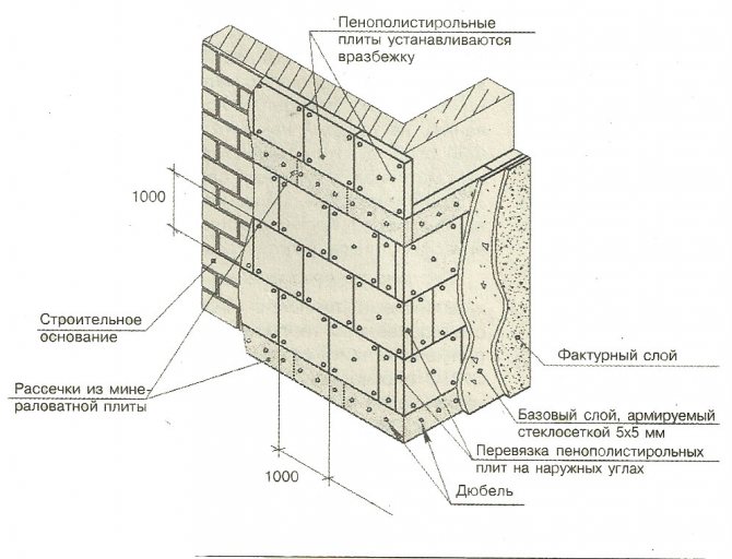 Facade insulation scheme with expanded polystyrene.