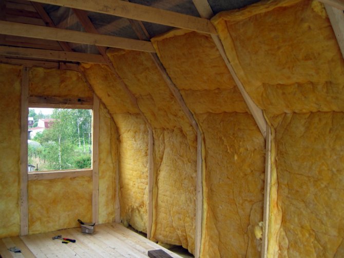 - Glass wool Is the most famous and popular product of modern building insulation technologies. The prime cost of a running meter is low, and the quality indicators are very high - it retains its original properties for a long time, if all laying conditions are fully observed. Produced from quartz mineral stone by the finest splitting under special thermal conditions. In fact, this is a very economical and at the same time high-quality insulation, and the latest technologies have saved the cotton cloth from harmful glass impurities, but not all manufacturers accurately follow the process technology, therefore, there may be residual effects of poor quality mineral wool in terms of environmental indicators. But for safety reasons, it is better to wear gloves and a protective suit. It is convenient to work with it - the products are supplied in rolls of the required length, low weight indicators will allow you to easily insulate the house even alone.