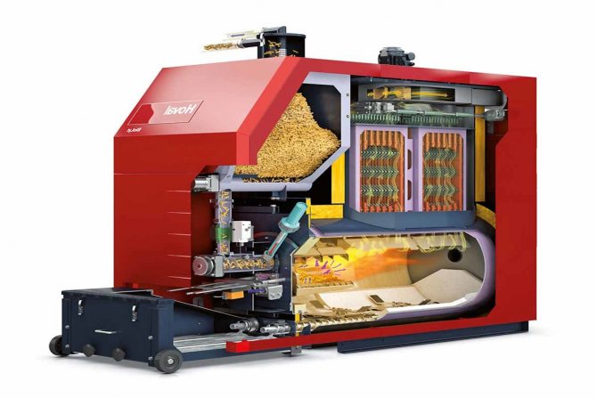 Sur une note! Grâce aux chaudières à combustibles solides, il est possible d'organiser le processus de recyclage des déchets de travail du bois - copeaux et sciure de bois. Ainsi, les unités ne remplissent pas seulement une fonction de chauffage. Leur utilisation est justifiée dans les zones où l'industrie du bois est largement développée.