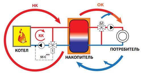 - la possibilité d'utiliser des chaudières de différents types... Le réservoir de stockage sera commun pour un combustible solide et, par exemple, une chaudière à gaz ou électrique, vous permettra d'organiser simplement un seul système d'alimentation en chaleur chez vous et de vous assurer avec plusieurs sources de chaleur.