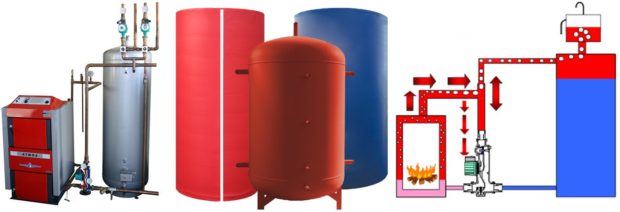 Déverser de l'eau chauffée dans l'égout n'est pas très intelligent et économique, il est donc préférable de compléter la conception d'une chaudière à combustible solide réservoir de stockage... Il s'agit d'un tampon entre la chaudière et le reste du système de chauffage, grâce auquel un certain nombre de fonctions importantes: