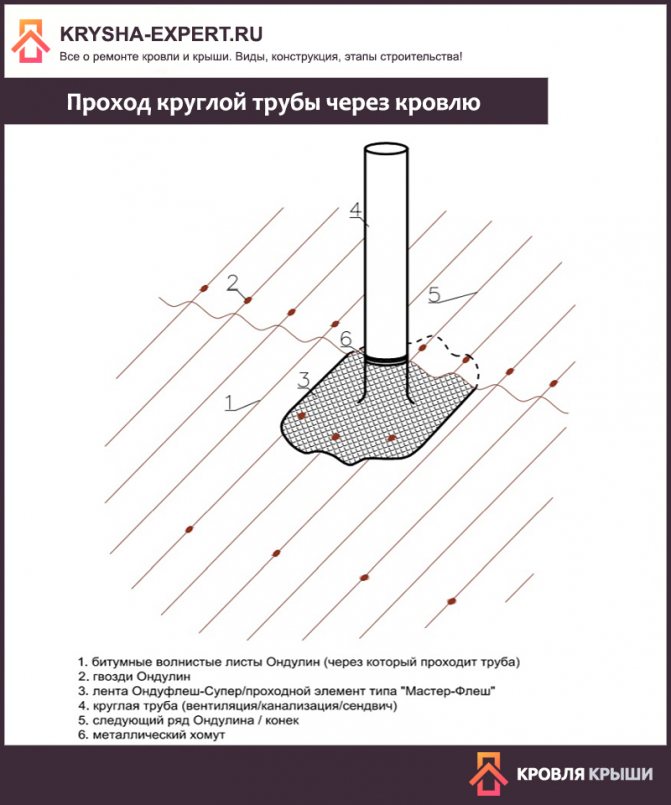 Les parties en bois du toit et les toits en matériaux combustibles présentent un risque d'incendie élevé. Le tuyau est placé d'eux à une distance de 15 et 30 cm, respectivement, et ces éléments structurels sont isolés avec de l'acier de toiture, de l'amiante en tôle flexible.