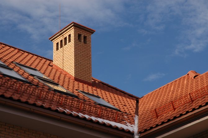 Avec une conception interne, le tuyau chauffe en outre la pièce. Mais son installation est considérée comme difficile en raison de la nécessité d'éliminer les espaces dans le toit afin qu'il n'y ait pas de fuites et de protéger le toit du feu.