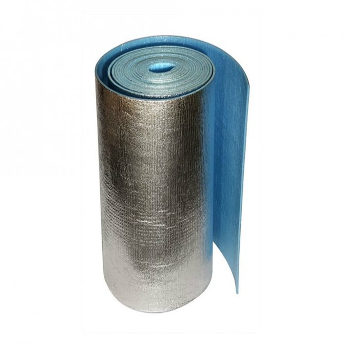 Fabriqué à partir de mousse de polyéthylène avec une structure poreuse. Une couche de papier d'aluminium est collée sur le dessus comme réflecteur de chaleur. Ce matériau calorifuge est plusieurs fois plus fin que la laine de basalte. De plus, il réfléchit la chaleur et ne l'absorbe pratiquement pas.