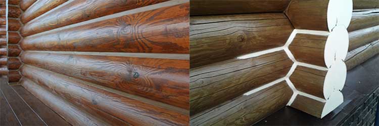 - préparation de la base.Pour cela, la poussière, la saleté, les copeaux et autres contaminants sont éliminés de la surface en bois. Lorsque vous travaillez en hiver, il est également nécessaire de nettoyer les bûches de neige ou de glace. Lorsque vous travaillez par temps chaud, il est recommandé d'humidifier légèrement les coutures. Le nettoyage est effectué à l'aide d'un broyeur avec un accessoire approprié, des spatules, des grattoirs ou une brosse métallique. Les grandes fissures sont en outre traitées avec des apprêts acryliques spéciaux et séchées (environ 8 heures);