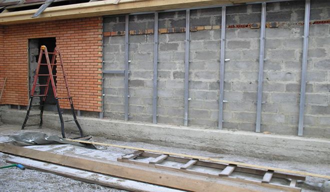Pour donner au socle une projection naturelle sur le mur en dessous, un lattage spécial est fabriqué à partir de profilés métalliques ou de poutres en bois.