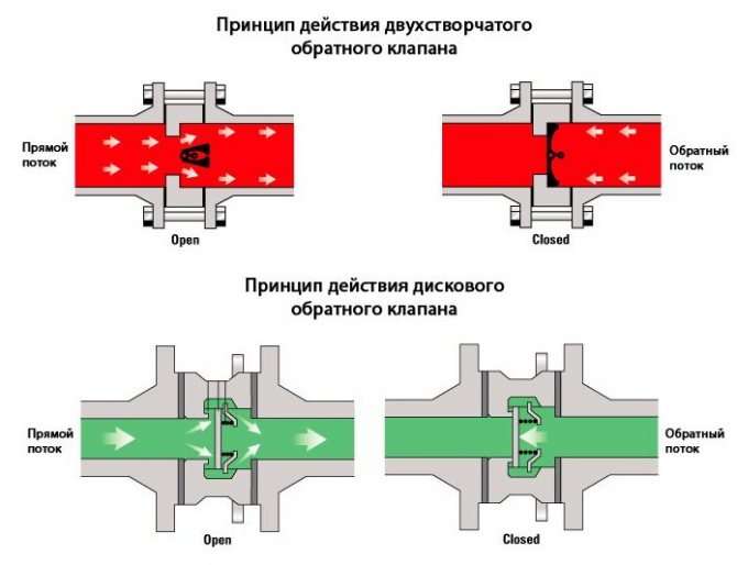 Le principe du clapet anti-retour, quel que soit l'endroit où il est installé - dans un tuyau d'égout ou une gaine de ventilation - n'est en rien différent. Il est fait de telle manière que le mouvement de l'eau ou de l'air (selon le lieu d'installation) ne se fait que dans un seul sens. Lorsque vous essayez de revenir en arrière, l'air ou l'eau sera bloqué par des volets bien fermés.