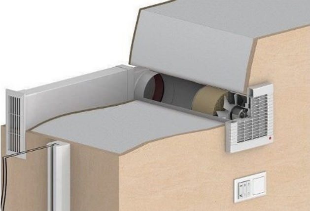 Dans le cas où un dispositif de ventilation de conduit est utilisé, il doit être inséré dans le trou et recouvert d'une grille décorative. Il est à noter que le ventilateur de conduit a un faible niveau sonore pendant le fonctionnement en raison du fait que son moteur est situé dans le trou de ventilation.