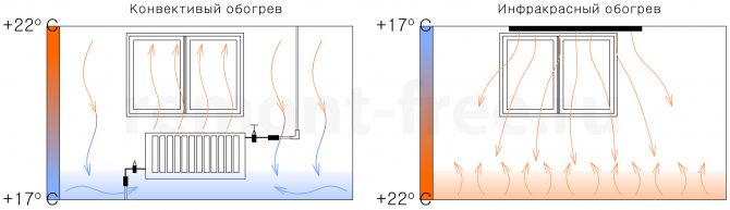 - Il y a un matériau derrière l'élément chauffant, qui est un réflecteur. Il reçoit des rayons chauds et les réfléchit, grâce auxquels ils pénètrent dans la pièce.