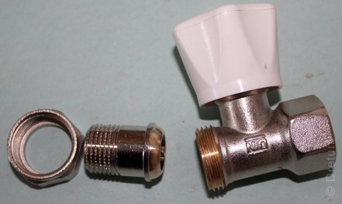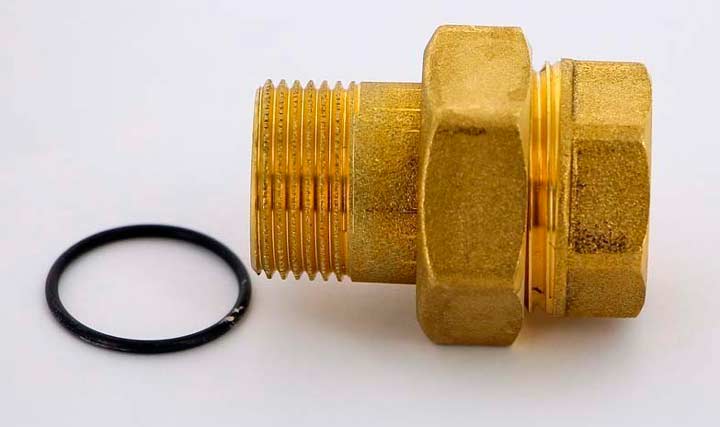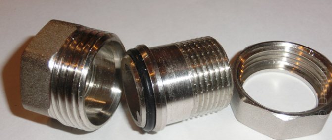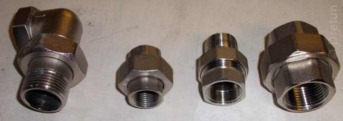 - Avec un filetage extérieur - dans la conception de la pièce, il y a un écrou-union et deux raccords.