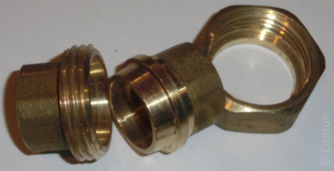 Référence: si l'on considère les connexions de type couplage, alors il a la capacité d'être démonté et réutilisé. Dans le même temps, l'ensemble comprend des raccords (2 pièces), un joint en caoutchouc et un écrou-union. Les dimensions de l'appareil sont petites, il n'y a pas de rotation lors de l'installation des éléments de tuyauterie.