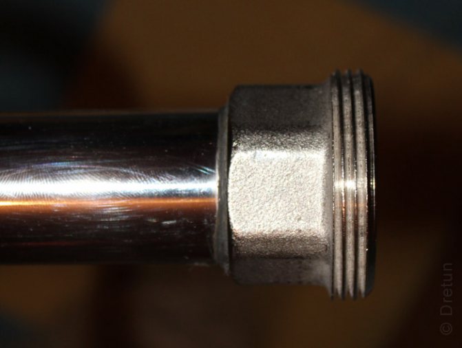| Achèvement de l'installation | En principe, l'étape précédente peut être définitive, cependant, pour ceux qui aiment jouer la sécurité, il est possible d'utiliser du ruban de téflon, qui est utilisé pour enrouler le fil de starter. Cela fournira une fiabilité supplémentaire du raccordement des tuyaux. |