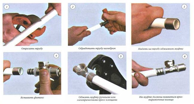 | Phase préparatoire | Avant de procéder au processus d'installation, vous devez examiner attentivement l'intégrité de tous les tuyaux et connexions, avant cela, en supprimant tous les chanfreins, le cas échéant, aux endroits où cela est nécessaire. Dans le cas des tuyaux en polypropylène, un processus d'étalonnage doit être effectué. |