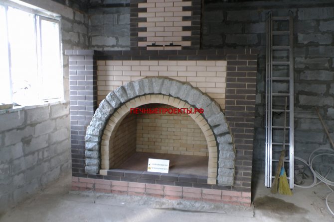 | Cheminée avec une niche pour le bois de chauffage. Il y a un endroit pour stocker et sécher les bûches sous la chambre de combustion. Foyer en briques réfractaires (Largeur - 77 cm, hauteur - 50 cm, profondeur - 50 cm). La masse moyenne d'un foyer sans cheminée est de 2300 kg. Les dimensions de la cheminée sont de 1,3 m X 0,75 m X 2,5 m. Elle peut être réalisée en briques céramiques de différentes couleurs et textures. A un loquet caché. Poussée à 100%. Il est chauffé immédiatement après la fin des travaux !!! |