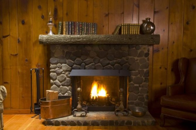 - Un foyer semi-fermé peut être installé dans n'importe quelle pièce, quel que soit le matériau des murs de la maison. Par exemple, sur photo ci-dessus, une telle cheminée est installée dans une maison en bois.