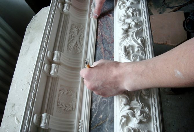 La plupart du temps, le moulage en stuc de gypse est appliqué sur la zone de l'ouverture du foyer. Le type de matériau, dont le prix peut différer considérablement, dépend de la technologie et de la méthode de production.