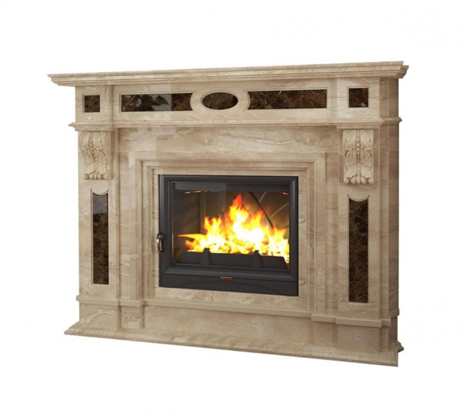 Un portail en marbre décorera parfaitement l'image d'ensemble. Ces cheminées sont applicables dans une variété de styles. La taille d'un portail en pierre naturelle peut être absolument quelconque. Une belle vue - des flammes à travers le portail et du marbre. Un tel portail peut être fini avec de la malachite.