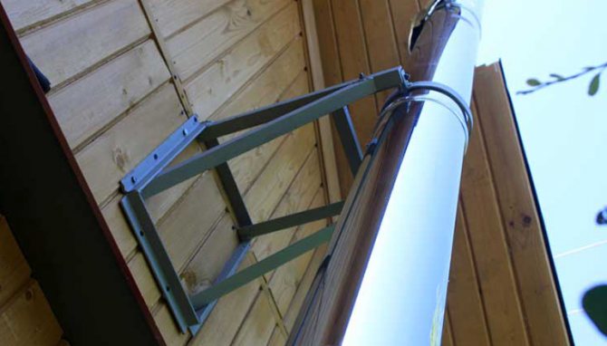 L'élément de support pour la fixation du conduit d'air est installé directement sous le tour de la ligne au point de sortie de l'appareil de chauffage, à la fois à l'intérieur et à l'extérieur du bâtiment. Il doit être situé directement sous le raccord coudé.