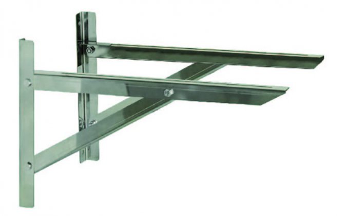 Avec une petite distance du mur, des supports muraux en plaque sont choisis; avec une augmentation du dégagement, vous devrez passer aux structures en porte-à-faux.