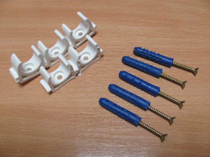 - La première étape consiste à marquer le tracé du futur pipeline autour du périmètre. Veuillez noter qu'il doit être installé avec une légère pente - de cette façon, vous excluez la possibilité de gel de l'eau dans la canalisation, même dans une pièce non chauffée (par exemple, dans une maison de campagne) .À l'aide d'une perceuse, vous devez percer des trous pour la cheville - clous Dans les trous, clips de fixation pré-préparés pour polypropylène Nous insérons la cheville dans le trou avec un marteau et un tournevis.La dernière étape du travail consiste à installer les tuyaux dans les clips.