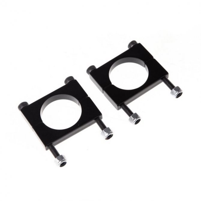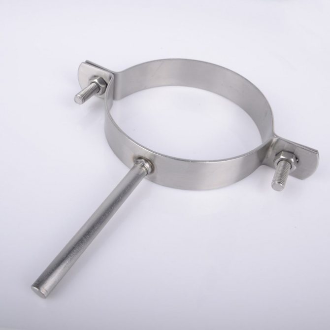 Les pinces diffèrent par la forme de fixation des conduits de cheminée - au lieu d'un anneau fermé, deux supports de serrage sont utilisés.