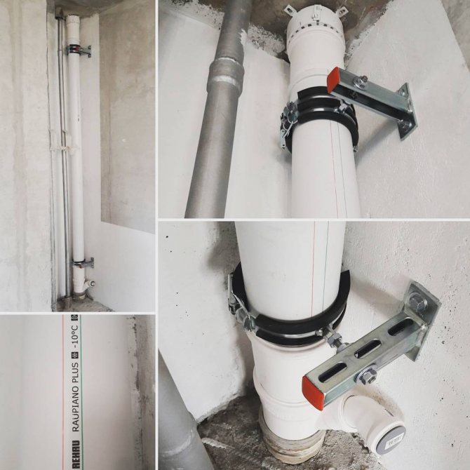 Pour fixer les tuyaux d'égout en fonte et en plastique, il suffit d'utiliser des pinces spéciales avec des joints en caoutchouc. Leur installation est extrêmement simple et ne nécessite pas d'outils spéciaux. Il suffit de préparer avec compétence un plan de distribution des canalisations d'égout et d'indiquer dessus tous les endroits où installer les fixations.