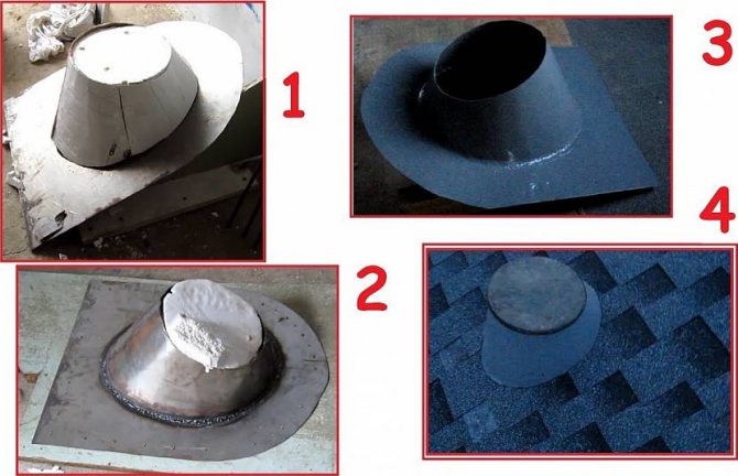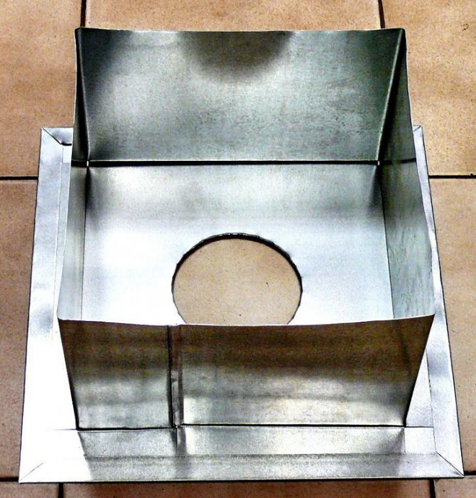 - Pour passer d'une forme carrée à une section circulaire, une plate-forme de support (carrée) et un tuyau de dérivation (cylindre) sont nécessaires. Mieux vaut s'il s'agit d'une construction monobloc.