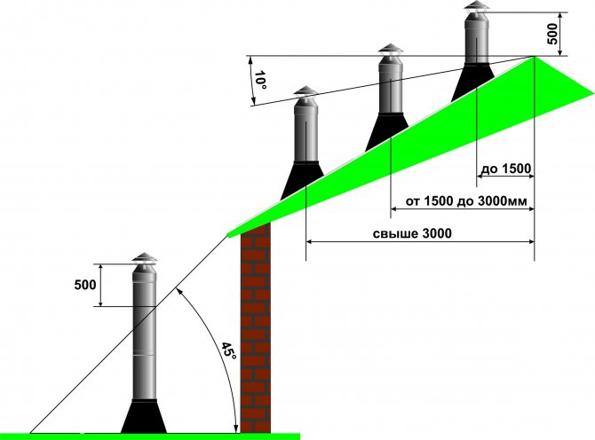 - Au-dessus de la planche de faîtage d'un bâtiment fait de matériaux de construction dangereux pour le feu, même un système d'évacuation des fumées résistant au feu devrait s'élever d'un mètre et demi.