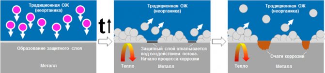 Les solutions salines, bien qu'elles gèlent à des températures plus basses que l'eau et sont inoffensives pour l'homme, sont très corrosives. Au fil du temps, ils sont «salés» à la surface des tuyaux et des échangeurs de chaleur. De telles solutions ne «font pas non plus face» aux conditions hivernales russes en raison d'un point de congélation insuffisamment bas.