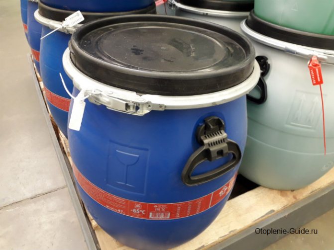 Pour la commodité des consommateurs, les antigels sont vendus emballés en bidons de 10 ou 20 kg, ainsi qu'en fûts de 50 kg. Pour remplir un système de chauffage d'un volume de 100 litres, environ 115 kg de liquide de refroidissement seront nécessaires.