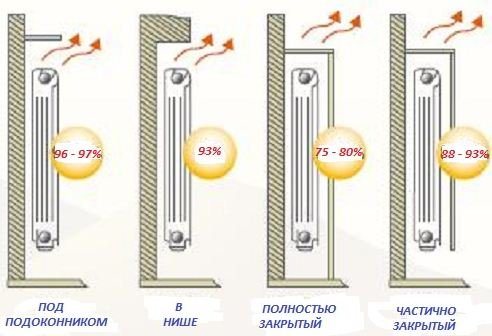 - la distance entre le rebord de la fenêtre et la partie supérieure du radiateur doit être presque la même - 50-60 mm ou plus;