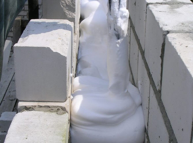 Comme il est plus facile de travailler avec un liquide qu'avec un matériau en feuille et en rouleau, ce type de mousse est simplement créé pour isoler toutes sortes de sinus et de cavités. La mousse fournie par l'installation a une consistance assez dense, de sorte qu'elle peut remplir l'espace entre deux plans stables. Ainsi, la mousse liquide est utilisée pour l'isolation thermique des coffrages en pierre, des faux murs, des planchers en bois.