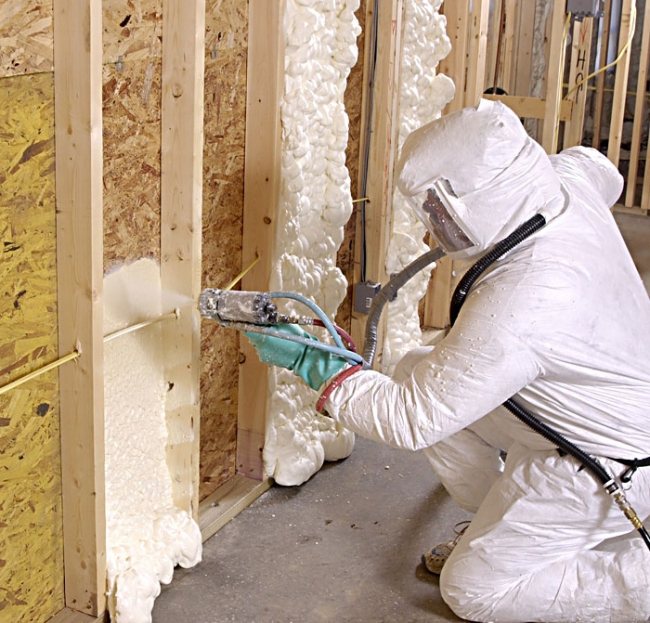 Il est important de considérer! Bien que l'isolation par pulvérisation soit considérée comme écologique, des précautions bien pensées doivent être prises lors de l'isolation des bâtiments résidentiels. Au moment de l'application du matériau, une réaction de polymérisation se produit, accompagnée d'un degré élevé de toxicité. Et seulement après la solidification finale, le risque d'empoisonnement disparaît complètement