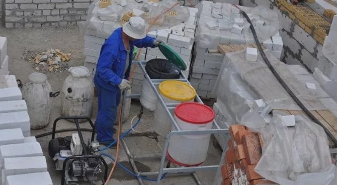 Une résine polymère y est également ajoutée, ce qui contribue au durcissement de la mousse. Pour améliorer les qualités du matériau, divers modificateurs doivent y être versés. Tous les composants sont soigneusement mélangés dans une installation gaz-liquide sous l'influence de l'air comprimé. Si vous souhaitez réduire le coût de la construction, essayez de produire de la mousse liquide de vos propres mains directement sur le chantier.Cela vous permettra de terminer les travaux de finition plus rapidement et en réduira considérablement le coût.