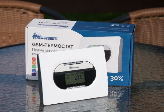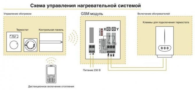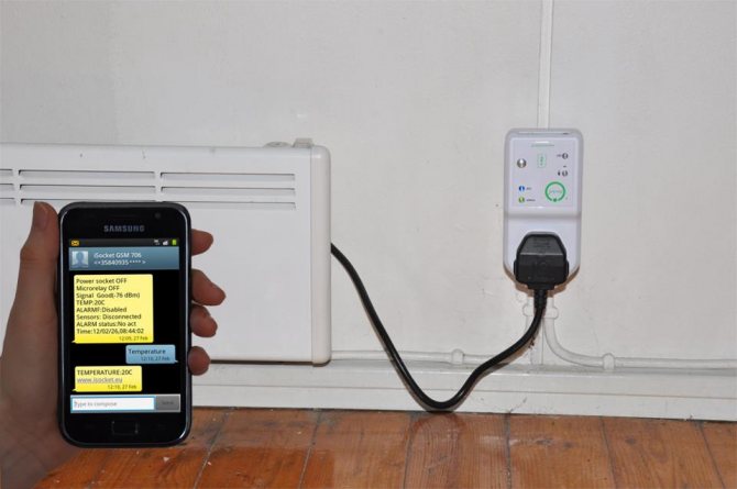 За да включите нагревателите своевременно, трябва да поставите класическа SIM карта в модула. Необходимата команда се предава от всеки смартфон, след което устройството ще комуникира с контролния блок и конвекторите ще бъдат конфигурирани чрез радиосигнал. Можете също така да инсталирате универсална програма, благодарение на която можете да зададете следните параметри: време за включване и изключване, стайна температура. В отдалечен режим можете напълно да преконфигурирате работата на системата. В допълнение към това, устройството е снабдено с изходи за свързване към алармени сензори.