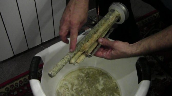 - Химическа - скалата се изстъргва с нож и след нагряващия елемент се поставя в разтвор за отстраняване на такива отлагания. Там той остава няколко часа.