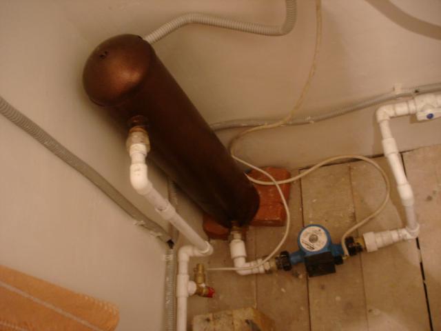 Две тръби са прикрепени към тялото. Единият от тях подава студена охлаждаща течност към котела, а другият отделя загрята вода. Вътрешността на корпуса е изцяло запълнена с отопляем елемент. Краищата могат да бъдат затворени с парчета стоманена мрежа.