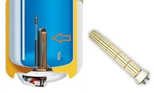 При някои модели бойлери Ariston нагревателният елемент се отвива обратно на часовниковата стрелка (как да разглобите бойлер Ariston, за да смените нагревателния елемент, прочетете тази статия). Това се показва от ключовите ръбове на месинговата част на фланеца. При Termex и Atlantik трябва да развиете гайките по обиколката и да премахнете закрепващата шайба. След това фланецът се изтегля надолу.