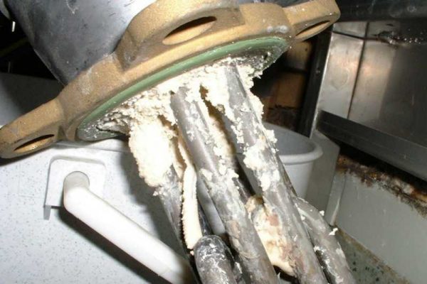 Водонагревателят се нуждае от почистване на нагревателния елемент след 1-2 години от датата на започване на експлоатацията, за профилактика. Ако водата се нагрява бавно, консумацията на енергия се увеличава, котелът е шумен, тогава очевидната причина за всичко е варовикът. С течение на времето плаката се трансформира в дебела кора върху елемента, която спира преноса на топлина. Защитното реле се задейства, котелът е изключен.