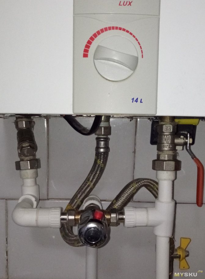 Монтажът на колонен котел трябва да бъде съгласуван с газовата служба. Стенният котел е прикрепен към стената с големи самонарезни винтове. Окабеляването е монтирано отдолу. Тръбата за студена вода трябва да бъде снабдена с топлоизолация, за да се избегне кондензация. За да се предпазите от котлен камък, най-добре е да използвате магнитен датчик, който се поставя на входа на колоната. Дългият експлоатационен живот на такова устройство гарантира комфорт при използване на котела. За да свържете газа, трябва да закупите специален маркуч и за облекчаване на налягането в системата, предпазен клапан. Последната стъпка е свързването на котела към електрическата мрежа.