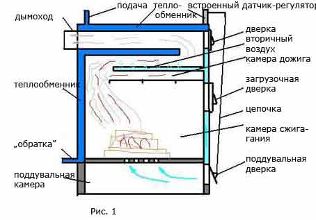 Фиг. 3 Схема на пиролизен котел с зареждаща врата отгоре