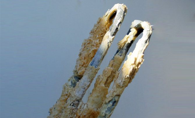 Нагревателните елементи са най-често срещаните сред всички електрически котли като цяло, но имат и специален неприятен недостатък - тенденция към образуване на котлен камък върху нагревателните елементи, което през годините води до намаляване на ефективността с 10, 20 и дори 30% , котелът се нуждае от повече електричество и време, за да загрее същото количество охлаждаща течност през слоя от мащаба.