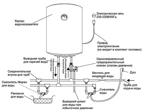 Свързването към електрическата мрежа се извършва с помощта на стандартен кабел с щепсел. Гнездото трябва да осигурява заземяване, към него е свързан трижилен кабел ("фаза", "нула", "земя"), напречното сечение на медни проводници с нагревателен елемент ≤8 kW трябва да бъде най-малко 4 mm2 , с по-голяма мощност - най-малко 6 mm2.